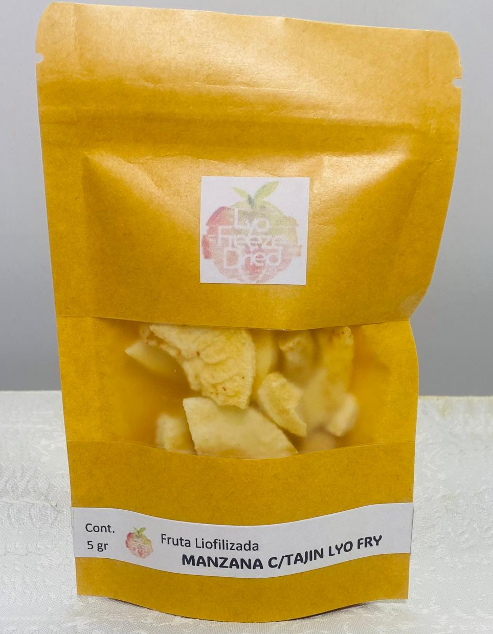 Ingredientes: Manzana liofilizada. Las presentaciones que contamos son RODAJAS y se pueden perdir natural, con canela o chile (tipo Tajin). Ideal para hacer pasteles, guisados, papillas, mousses, etc. Por ser un producto natural mantiene sus nutrientes, NO contiene conservadores ni aditivos.